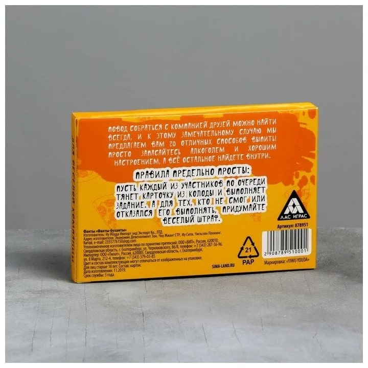 Купить игра для компании "фанты буханты" 20 карт от 100 руб. с доставкой до пункта выдачи в Урае. Интернет магазин ДекаМаркет. Оплата при получении.