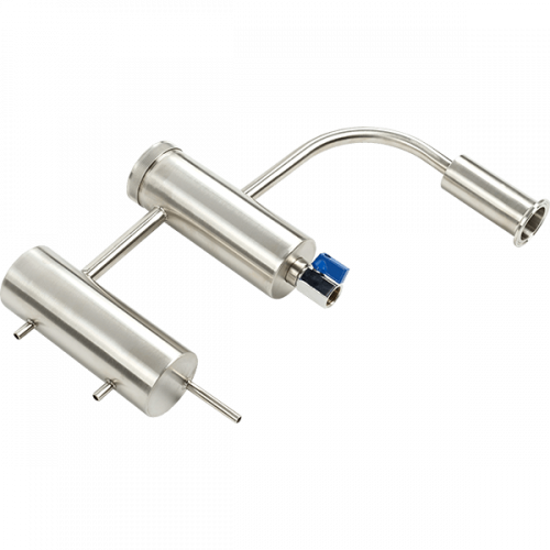 Основная функция сухопарника – отделить вредные и дурно пахнущие высококипящие примеси (сивушные масла) от самогона при перегонке. Сухопарник крепится к аппарату при помощи клампового соединения, что позволит модернизировать аппарат для более тщательной очистки продукта.